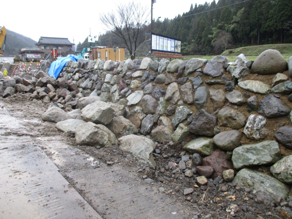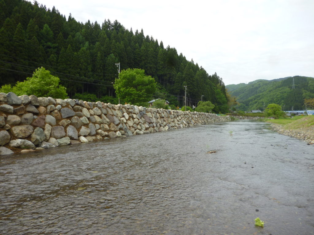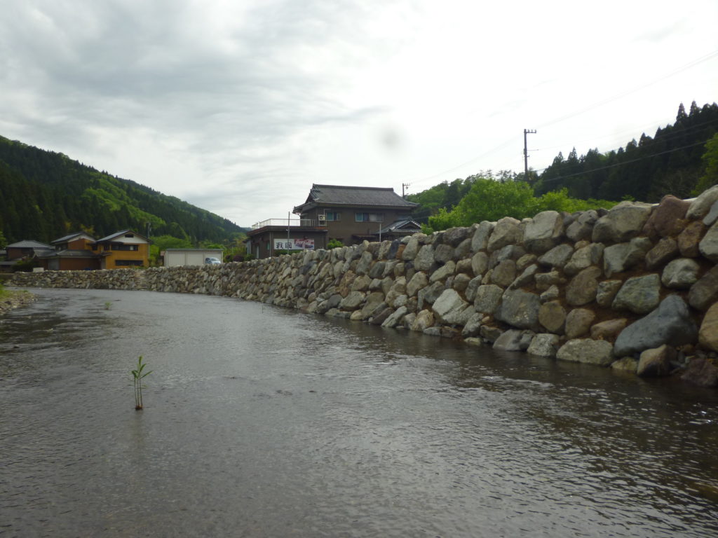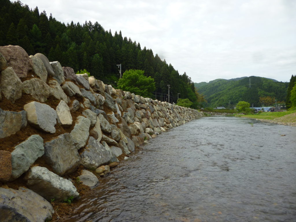 滑らかな法線形状と、頑丈な自然石護岸が大きく寄与しています。