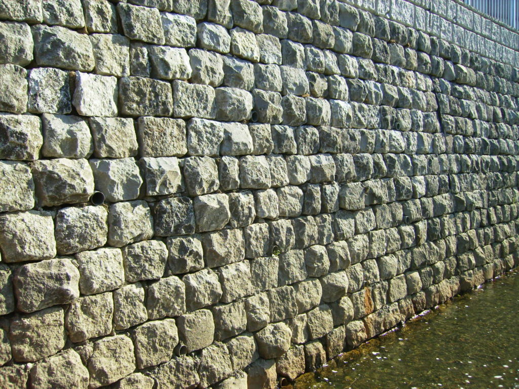 今回は、護岸の表面材として間知石を活用した施工が行われました。