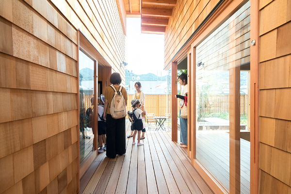 周辺の豊かな自然を感じられるよう、半屋外空間や木のぬくもりを活かした設計が随所に取り入れられ、開放感と安全性、そして見通しの良さに配慮した空間づくりが高く評価されました。特に地域に開放される多目的ホールは、地域交流の拠点としての役割も担っています。