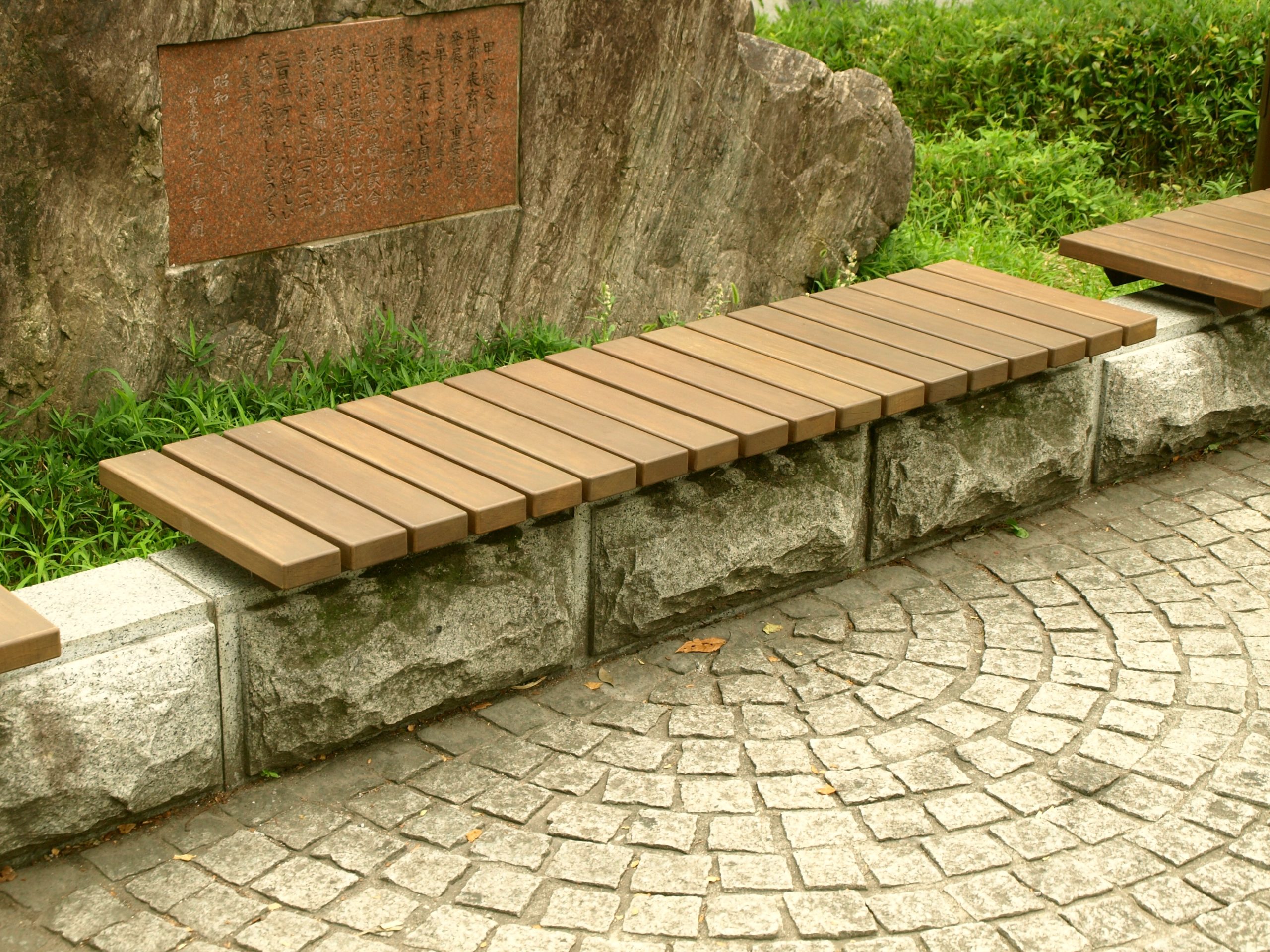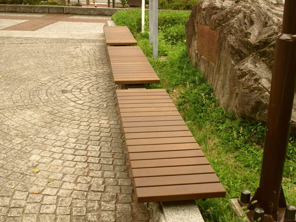 当社は、この駅前広場に設置されたベンチの材料として高耐久性木材「グリーンハート」材を納入しました。