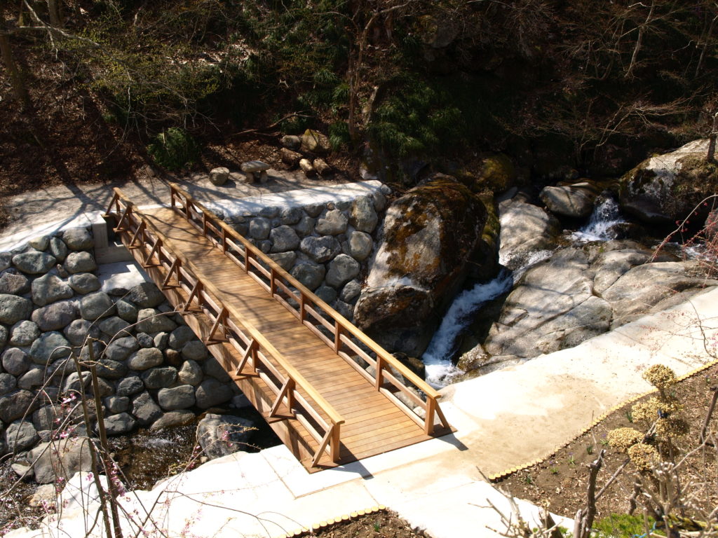 自然と共存する景観にふさわしい木橋として、天王桜の魅力をより引き立てる仕上がりとなっています。