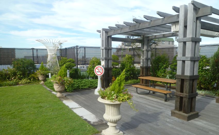 足立区役所北館の屋上には、緑と花を楽しめる「エコガーデン」が整備されています。