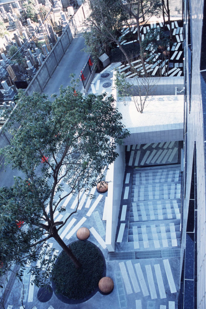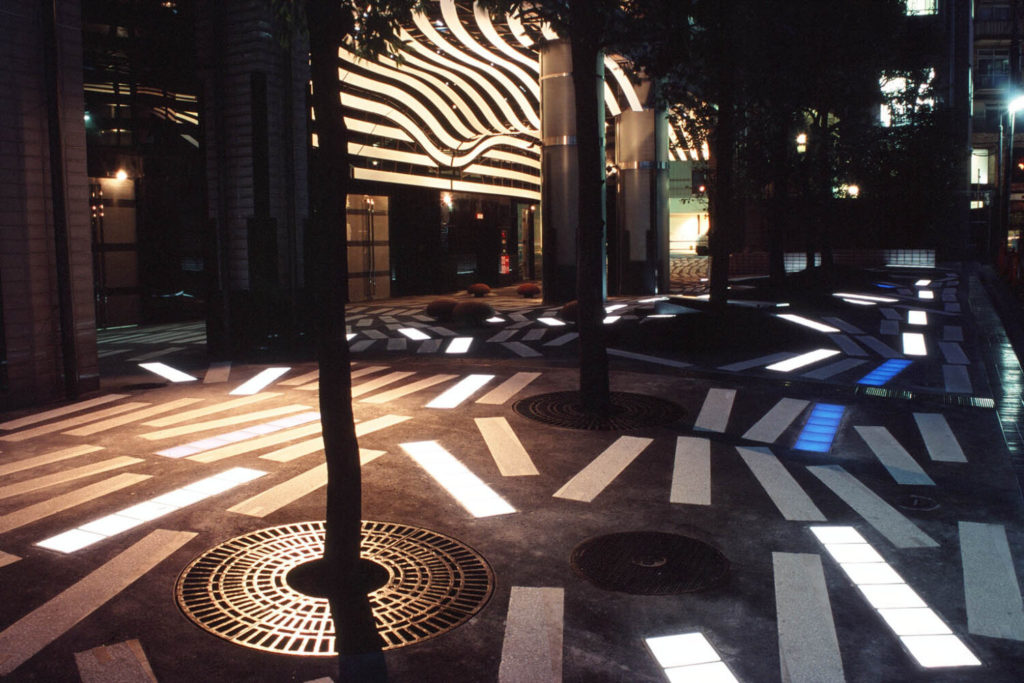 本プロジェクトは、バブル期に建てられ長年使用されていなかったオフィスビルを、住宅・商業・オフィスが共存する複合ビルへ再生するコンバージョン計画です。ランドスケープデザインでは、特に駐車場奥に続く住宅エントランスへのアプローチ空間を、暗さを感じさせない華やかな空間に仕立てることが大きなテーマとなりました。