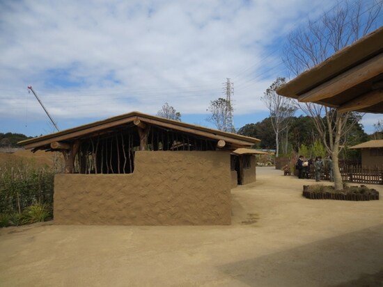 アフリカンヴィレッジは、ズーラシアのサバンナエリア内にある、牧畜民族ダトーガ族の集落「ゲーダ」を模したゾーンです。エリア内にはピグミーゴートとふれあえるスペースもあり、建物は土壁で統一され、まるでアフリカにいるような独特の雰囲気が演出されています。