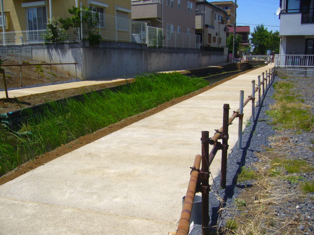 SKソイルは、この用水路沿いに続く歩道の舗装材として採用されました。