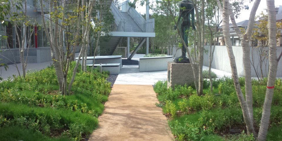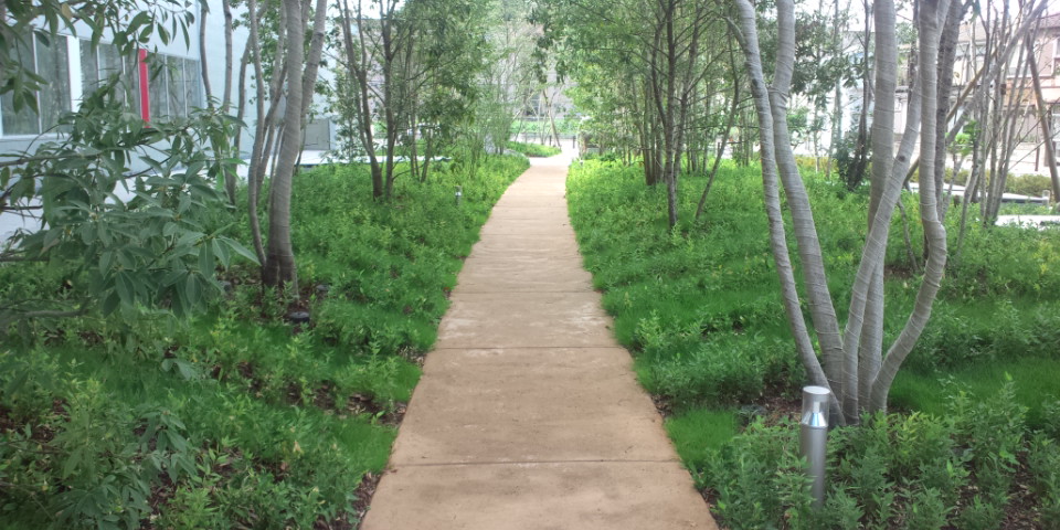 外構ランドスケープの一部に、当社の土系特殊舗装材 SKソイル が採用されています。