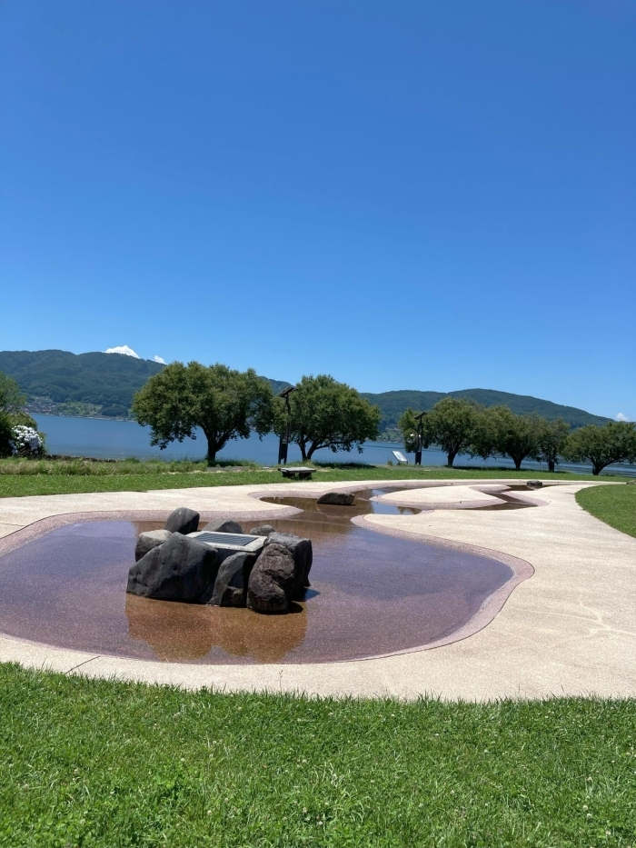 下諏訪町を流れる砥川河口の左右に整備された「赤砂崎公園」。その中でも諏訪湖側に位置するのが、地域の方々に親しまれている親水広場です。